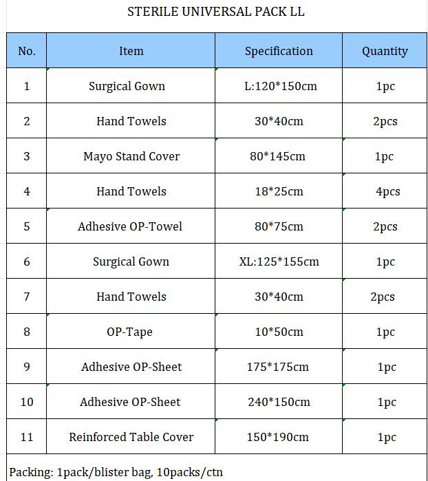 STERILE UNIVERSAL PACK LL Code:R222